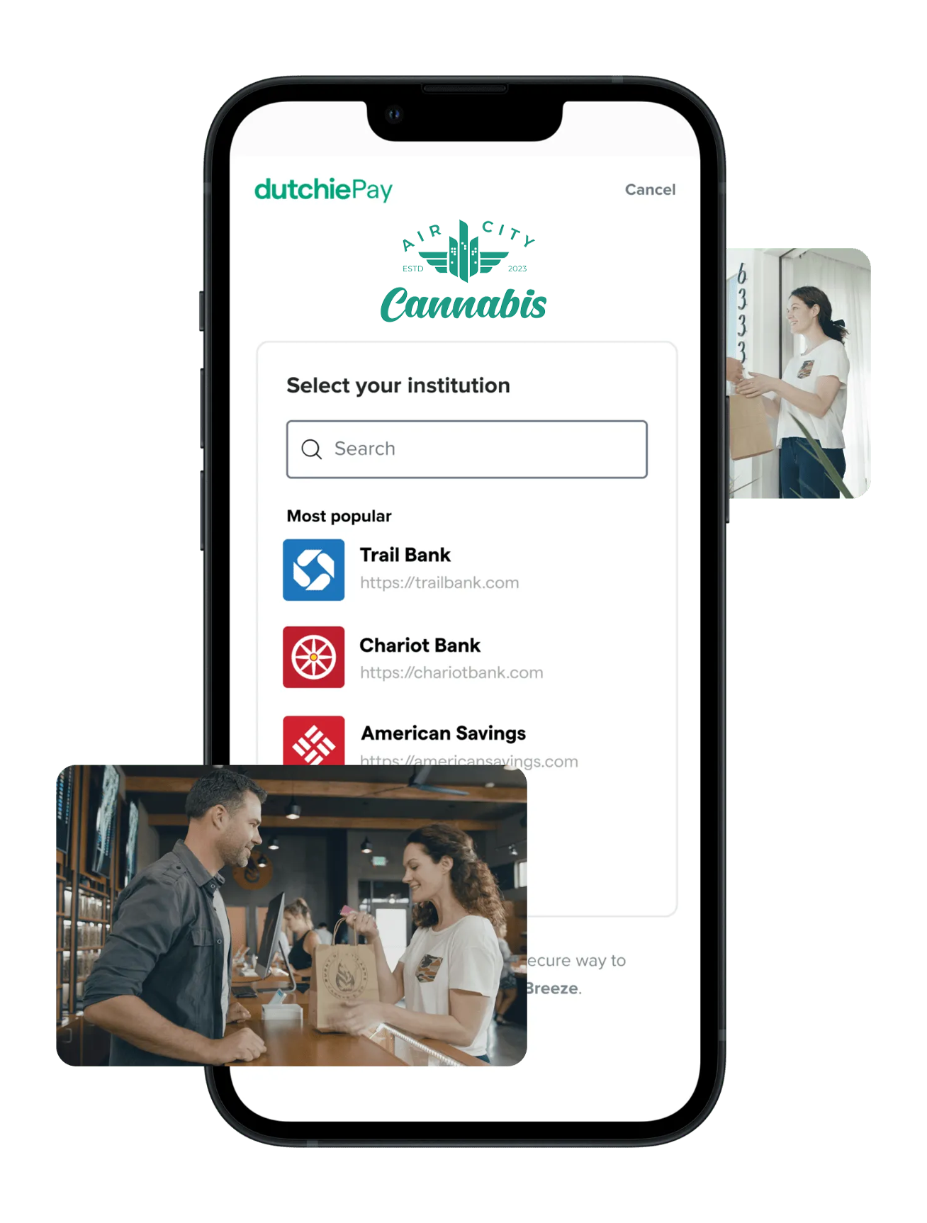 Dutchie Pay is a simple, secure, cashless way to pay for cannabis. You can easily sign-up here or while checking out from your favorite dispensary's Ecommerce site. Quickly & securely connect your bank account and complete your purchase. Next time, you can use Dutchie Pay with a single click log-in.